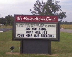I understand some churches like to grab our attention as we drive by their buildings, I get that…but sometimes you see a church sign and, if you’re anything like me, you shake your head and/or groan.
